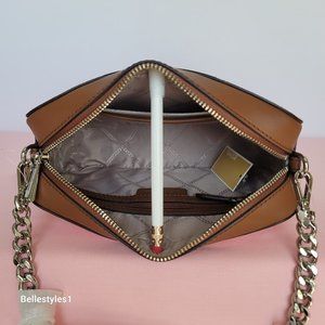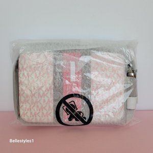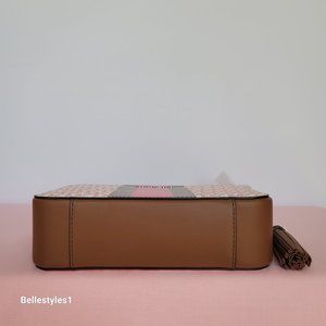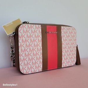 BRAND NEW WITH TAGS. Geranium Multi color. (Vanilla, Pink, Brown) A chic crossbody with enough room to carry your small essentials. Crafted from Polyvinylchloride PVC with a gorgeous stripe Signature logo print, finished with a tassel for added detail. It comes with an adjustable chain and leather crossbody strap for shoulder or crossbody wear.