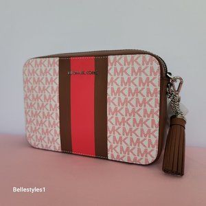 MICHAEL KORS Jet Set Medium Signature Logo Print Camera Bag-Geranium Multi