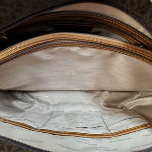 Michael Kors tote, MK Jet Set, signature logo bag, brown MK tote, large tote bag, coated canvas tote, MK shoulder bag, everyday bag, work bag, designer tote, MK charm, leather trim tote, travel bag, purse women, handbag, classic MK bag, monogram tote, gift idea, MK shopper bag