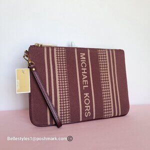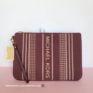 MICHAEL KORS Jet Set Signature Jacquard Large Zip Pouch Wristlet- Dark Berry