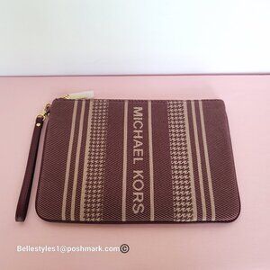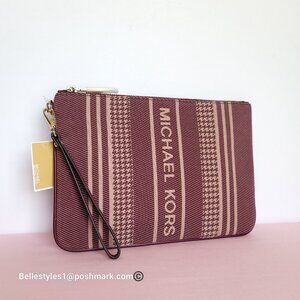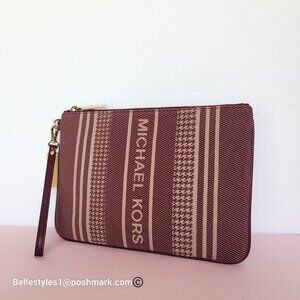 MICHAEL KORS Jet Set Signature Jacquard Large Zip Pouch Wristlet- Dark Berry