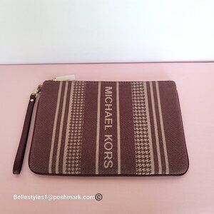 MICHAEL KORS Jet Set Signature Jacquard Large Zip Pouch Wristlet- Dark Berry