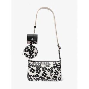 MICHAEL KORS Jet Set Small Sequined Floral Print Crossbody Bag with Case for Apple Air pod Pro NWT