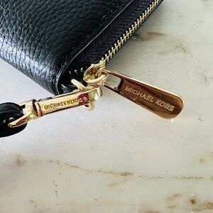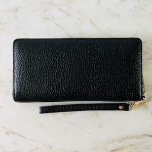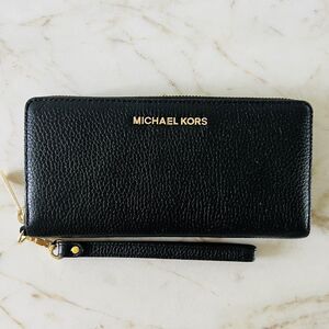 MICHAEL KORS Jet Set Travel Black Leather Travel Continental Zip Wallet Wristlet