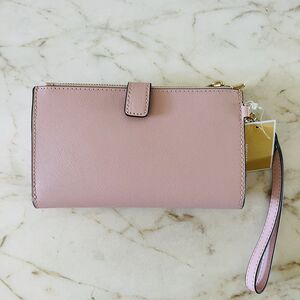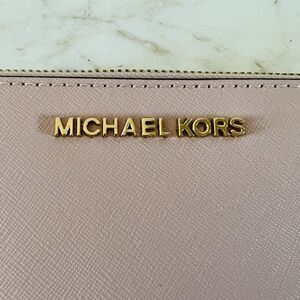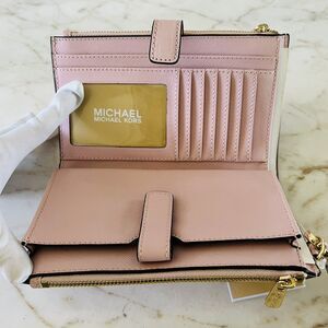MICHAEL KORS Jet Set Travel Blossom Pale Pink Leather Double Zip Wallet Wristlet