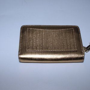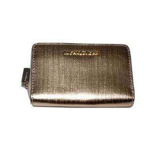MICHAEL KORS Jet Set Travel Card Case Wallet MK Metallic Gold Leather NWT