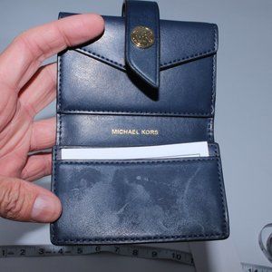 MICHAEL KORS Jet Set Travel Card Case Wallet MK Navy Leather NWT
