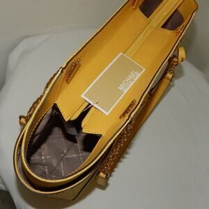 MICHAEL KORS Jet Set Travel Daisy Yellow Monogram LG Chain Shoulder Tote Bag NWT