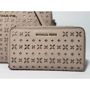 Michael Kors Jet Set Travel Large Crossbody & Wallet Set Perforated Light Pink