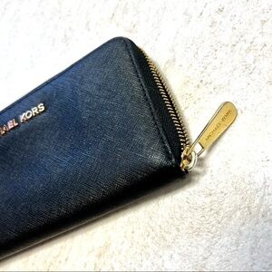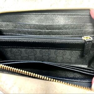 MICHAEL KORS Jet Set Travel Large Crossgrain Leather Wallet black womens