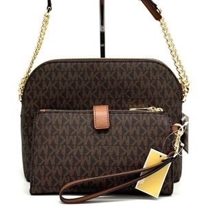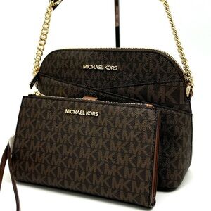 MICHAEL KORS Jet Set Travel Medium Dome Crossbody Bag & Double Zip Wallet Brown