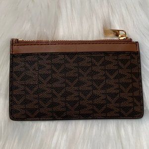 MICHAEL KORS Jet Set Travel Medium Zip Top Card Case in Brown
