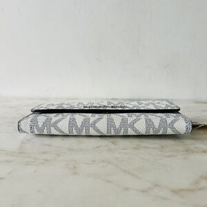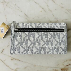 MICHAEL KORS Jet Set Travel Navy White Logo Leather Large Tri-Fold Wallet