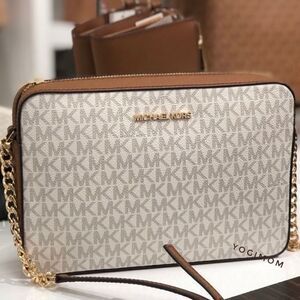 MICHAEL KORS Jet Set Large Vanilla MK Logo East West Xbody Messenger Hand Bag