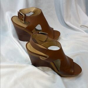 MICHAEL KORS, Josephine, Brown Leather Wedge Sandals, women, Sling Back, 9.5M