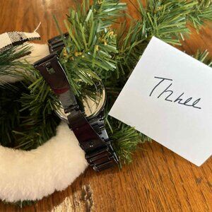 Michael Kors Kinley watch. There is no box or additional band links. This watch was checked and was keeping good time. This is in good, used condition. It is from a smoke free, pet friendly environment.