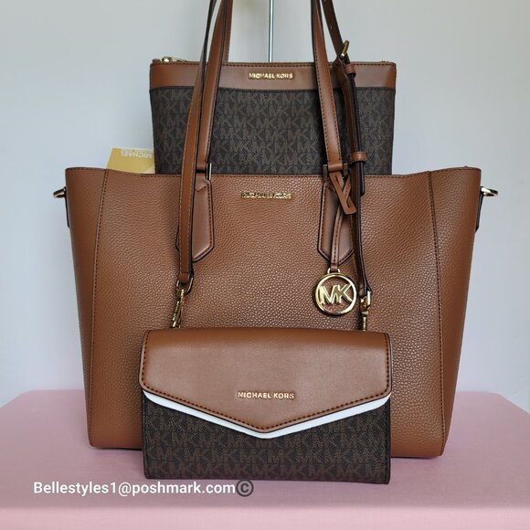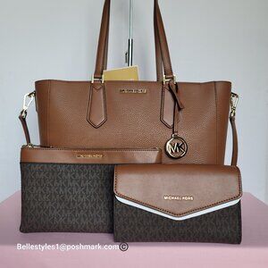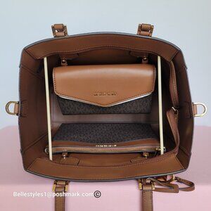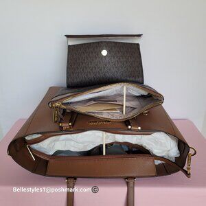 MICHAEL KORS Kimberly Embossed (PU) Large 3-in-1 Tote SET- Brown/Luggage π$198.