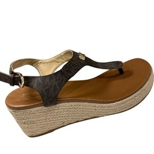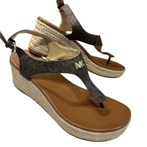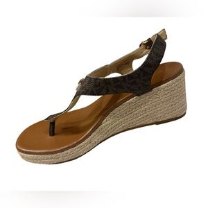 MICHAEL KORS LANEY LOGO ESPADRILLE WEDGE SANDALS BROWN SIZE 8 MSRP $165.00