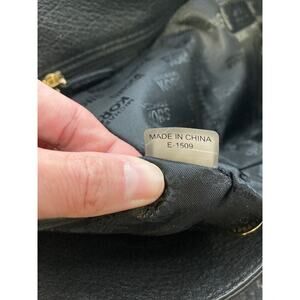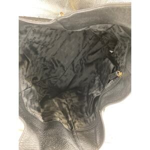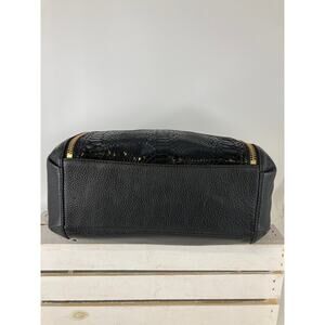 MICHAEL KORS, LARGE BLACK LEATHER ANIMAL PRINT SHOULDER BAG