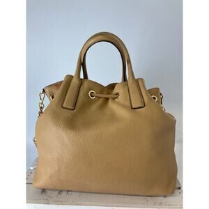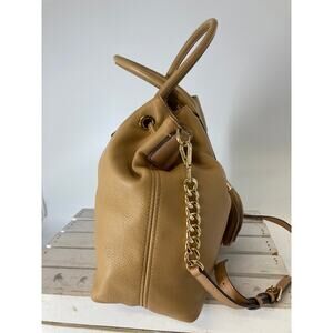 MICHAEL KORS, LARGE CAMEL LEATHER CROSSBODY BAG WITH TASSEL