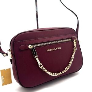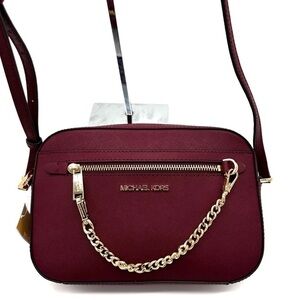 MICHAEL KORS LARGE EW ZIP CHAIN CROSSBODY BAG DARK CHERRY