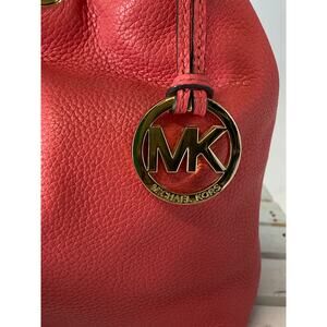 MICHAEL KORS, LARGE PINK PEBBLED LEATHER HANDBAG WITH TASSEL