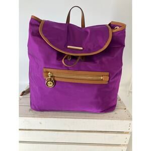 MICHAEL KORS, LARGE PURPLE, BROWN NYLON LOCK CHARM BACKPACK