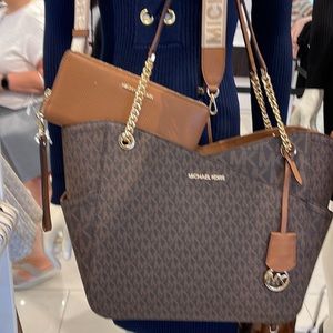 MICHAEL KORS LARGE X CHAIN SHOULDER TOTE & JST Large Travel CONTINENTAL Wallet