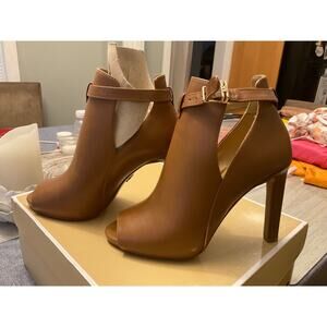 MICHAEL KORS LAWSON HIGH HEEL BUCKELED OPEN TOE SHOE. VACHETTA LEATHER. $298 SZ5