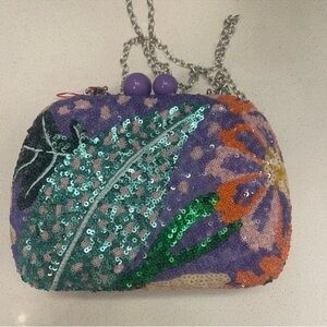 Michael kors women’s handbag. Red with writing accents. BRAND NEW W TAGS. Gold chain straps.