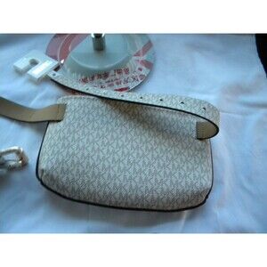 This Michael Kors signature belt bag is the perfect accessory for any man looking for a stylish and functional way to carry their essentials. With a bag width of 9 inches, height of 5.25 inches, and depth of 1 inch, this medium-sized bag offers enough space for all your daily necessities. The bag features a zip closure and an adjustable leather strap, making it easy to wear and carry. The vanilla and gray color combination gives it a trendy look that is sure to complement any outfit. The bag is made of high-quality leather and has a lining material of leather, ensuring durability and longevity. This Michael Kors belt bag is a must-have for any fashion-conscious man looking to add a touch of style to their wardrobe.