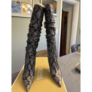 MICHAEL KORS LUNA SNAKE EMBOSSED SLOUCHY KNEE HIGH LEATHER BOOT SZ 8M $325 MSRP