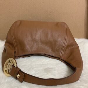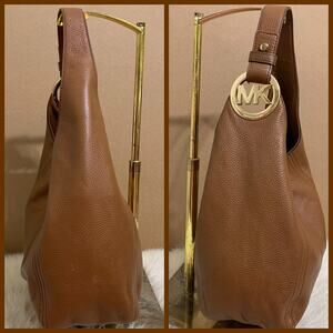 MICHAEL KORS Large FULTON Charm Shoulder Bag Hobo Luggage Brown Leather