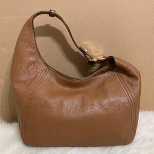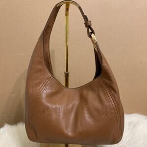 This MICHAEL KORS FULTON hobo is made from heavy weight pebble-grained luggage brown leather, with shiny gold hardware.