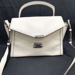 MICHAEL KORS Large Optic White Polished Leather Top Handle WHITNEY Satchel XB