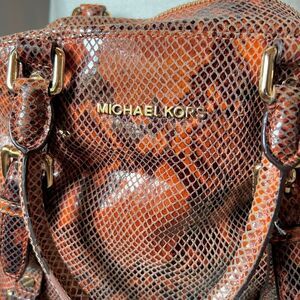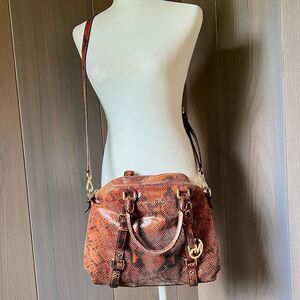 MICHAEL KORS Leather Snakeskin Python Embossed Satchel Shoulder Bag
