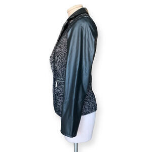 MICHAEL KORS Leather Wool Blend Tweed Sport Coat Jacket Blazer Black Fall Size 4