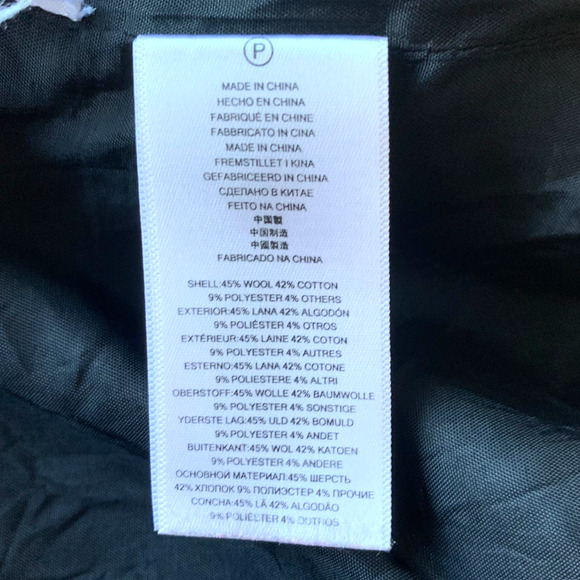 SHELL - 45% Wool, 42% Cotton, 9% Polyester, 4% others