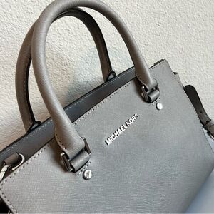 MICHAEL KORS Light Grey Selma Raven Bedford Fulton Satchel Tote Crossbody