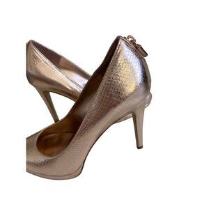 MICHAEL KORS Lock Rose Gold Leather Heels Size 7.5