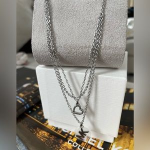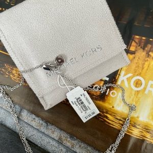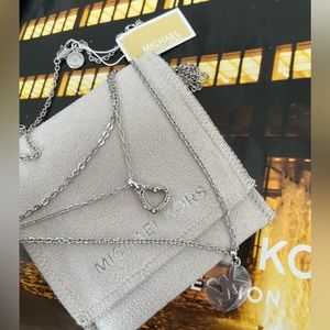 MICHAEL KORS Logo & Heart Silver Multi Strand Layered Necklace