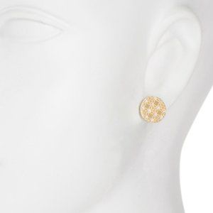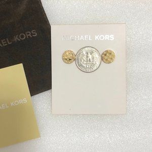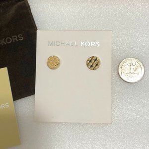 MICHAEL KORS Logo Stud Earrings Pave Crystal Gold Tone MK1