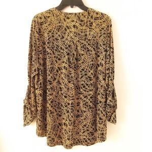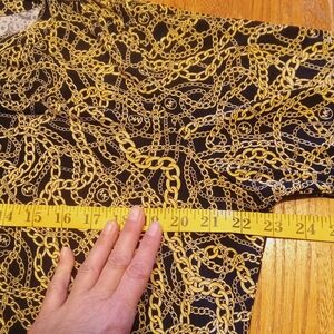 MICHAEL KORS Logo Zipper Pull Gold Black MK Chain Print Top 1X MSRP $98.00.