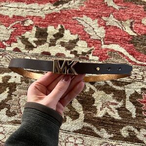 MICHAEL KORS Logo and Leather Waist Belt Brown Gold Large - MSRP $118