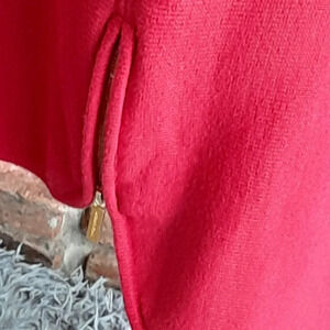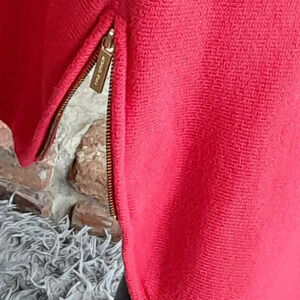 MICHAEL KORS Long Sleeve Tunic Sweater Red Knit. Round Neck. Gold zipper and logo plate. Size Large Loved Looks Like New Pet friendly homes.
