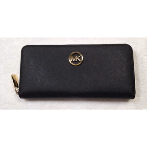 MICHAEL KORS Long Wallet MK Metal Logo Round Zip Black Plain Women's 4"x7"
