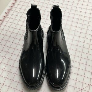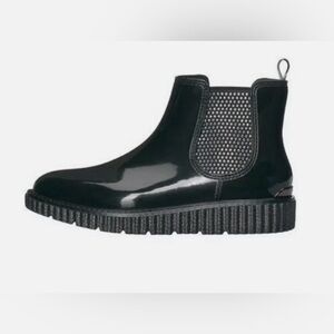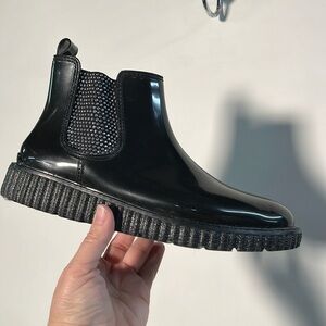 MICHAEL KORS "Lulu" Black w/ Silver Metallic Stud Leather Rain Booties SZ 9-9.5