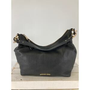 MICHAEL KORS, MEDIUM BLACK PEBBLED LEATHER SHOULDER BAG (ASIS)