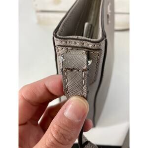 BLACK EDGING/ LEATHER TRIM OF BAG IS PEELING AROUD WERE CROSSBODY STRAP ATTATCHES TO BAG. (SEE PHOTOS). ASIS