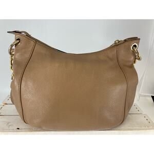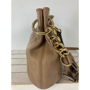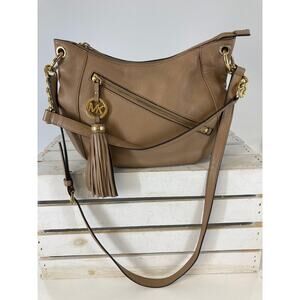 MICHAEL KORS, MEDIUM TAUPE PEBBLED LEATHER CROSSBODY BAG